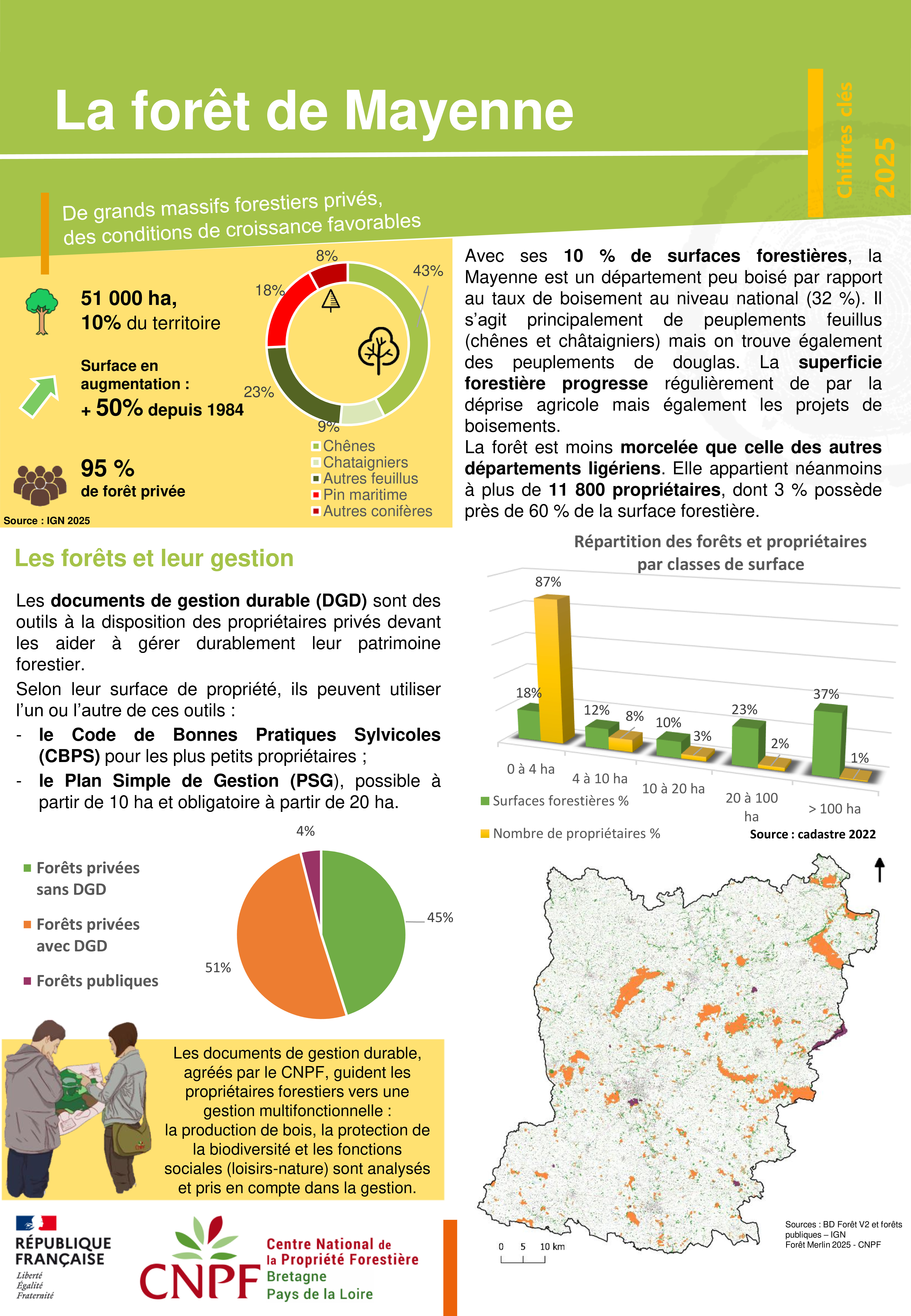 Chiffres clés des forêts à l'échelle du département de la Mayenne (sur les données décembre 2025)